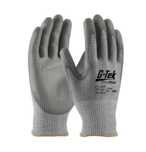 PIP G-Tek PolyKor A4 Industry Grade Seamless Knit PolyKor Blended Glove w/ Polyurethane Coated Flat Grip on Palm & Fingers / Gray - XL