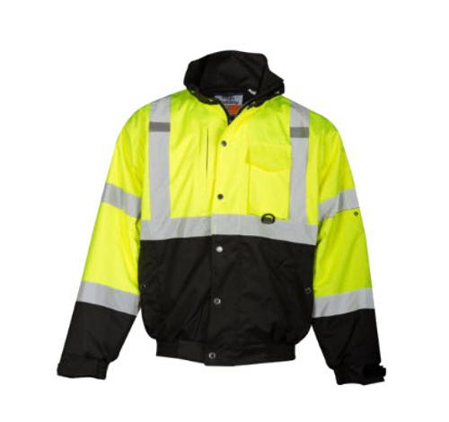 PIP ANSI Type R Class 3 Value Black Bottom Bomber Jacket / Hi-Vis Lime Yellow - Medium