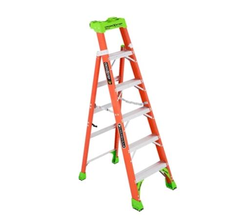 The industry changing Step-to-Extension 2-in-1 Cross Step Ladder is better than ever! Its HiVis green top and shoes makes it easily identifiable to prevent fines and improve workplace safety. SUPERIOR SAFETY: This 6-Foot Cross-Step/Shelf Ladder is made of superior quality, non-conductive fiberglass VERSATILE: Converts from a step ladder into a shelf ladder for a 2 in 1 combination in order to get closer to the work area PATENTED PRO-TOP SYSTEM: V-shape Pro Top allows the ladder to lean against walls, buildings and poles; and has plenty of features to improve performance when working electrical, construction, and residential jobs. It includes a magnet tray, hardware tray, drill and tool slots, and pipe or 2x4 holder. EQUIPPED WITH SHOX SYSTEM: Louisville Ladder exclusive SHOX system provides extra durability and resistance to abuse and accidental mishandling. STURDY AND STRONG: With its 300-Pound capacity, elegant design and smooth finish, you won’t find a more durable, reliable ladder. ABOVE AND BEYOND SAFETY STANDARDS: This ladder meets or exceeds the safety standards set by ANSI and OSHA.