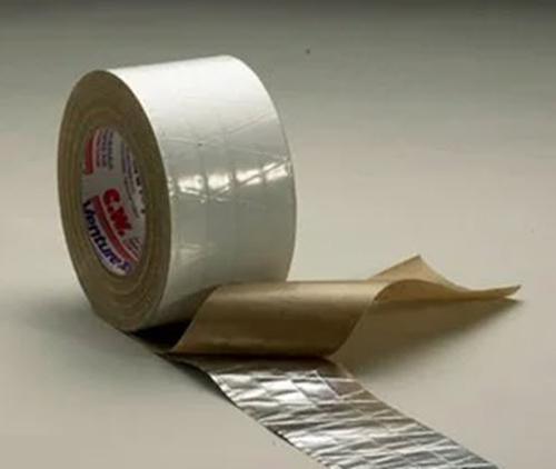 Tri-directionally reinforced, white polypropylene film/scrim/metalized PET facing tape coated with a cold weather acrylic pressure sensitive adhesive. Designed for use as a vapor seal for faced insulation.